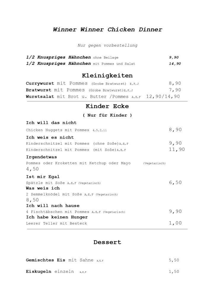 Speisekarte
